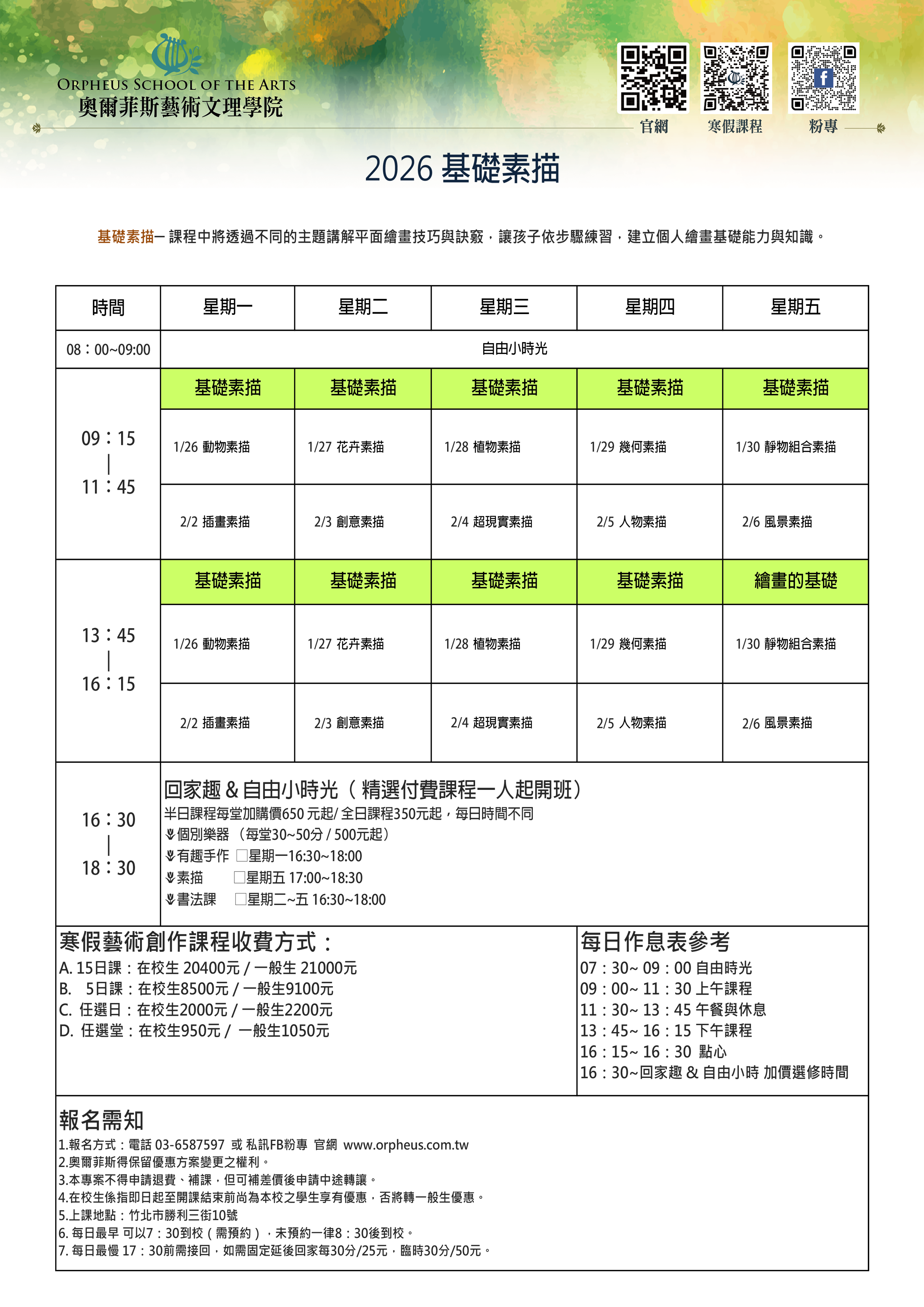 1.報名方式:電話 03-6587597 或 私訊FB粉專 官網 www.orpheus.com.tw