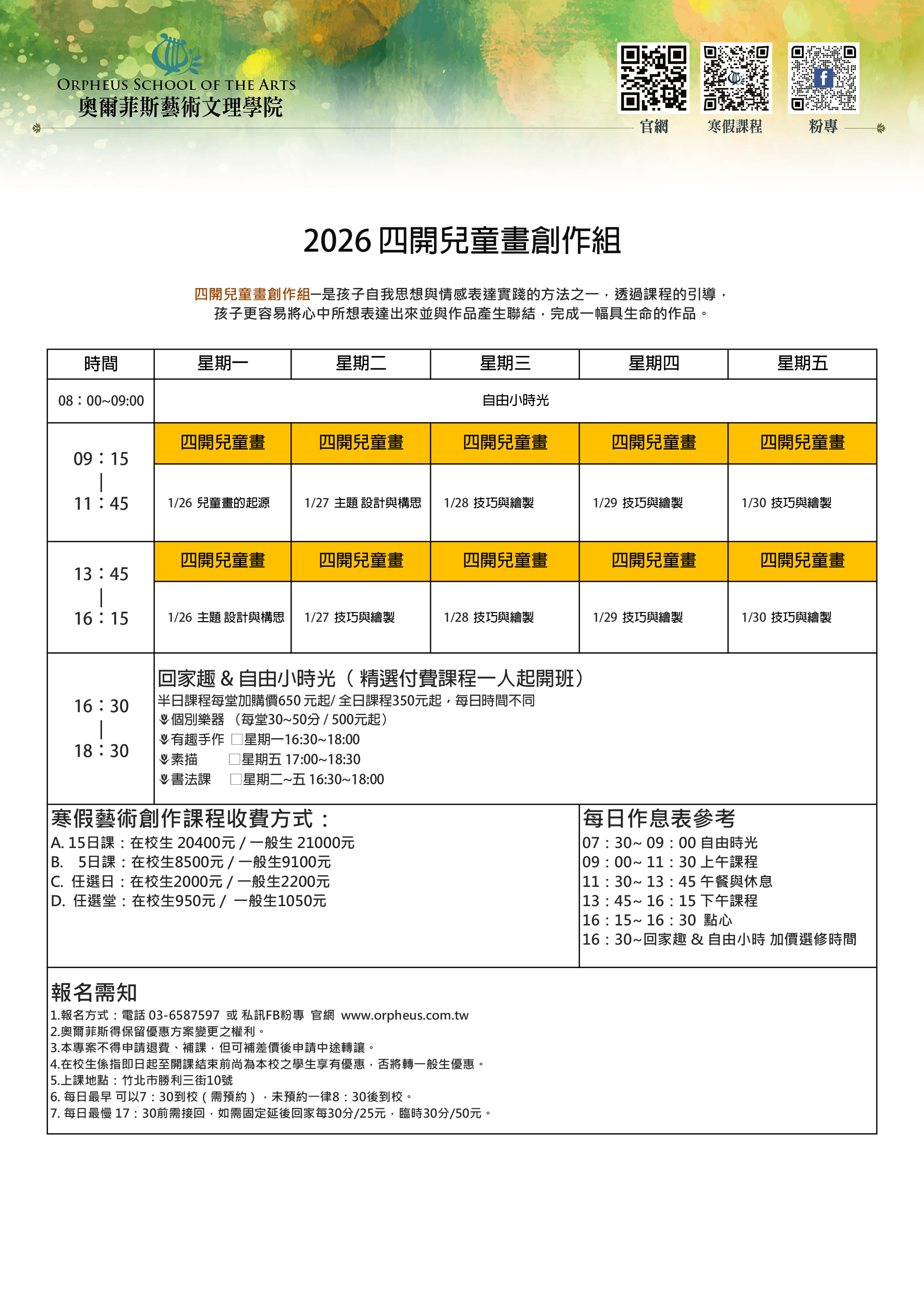1.報名方式:電話 03-6587597 或 私訊FB粉專 官網 www.orpheus.com.tw